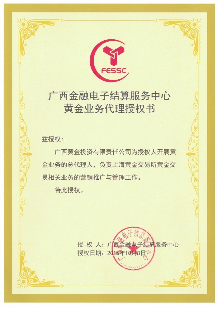 廣西金融電子結算服務中心黃金業(yè)務代理授權書